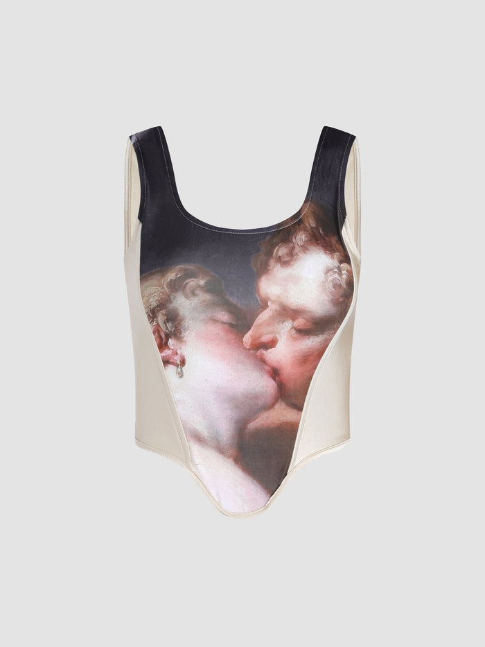 Abstract Figure Printed Corset Top