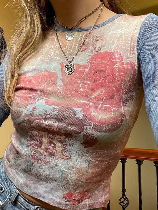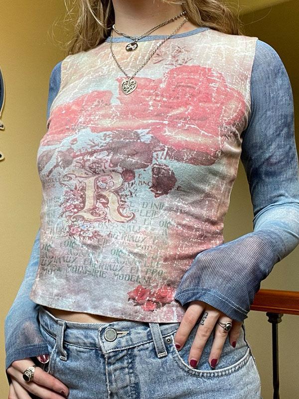 Abstract Figure Printed Round Neck Tee