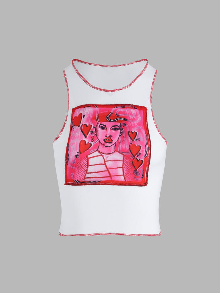 Abstract Print Round Neck Tank Top