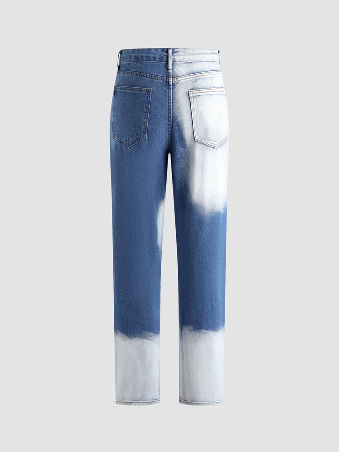 Acid Washed Colorblock Jeans
